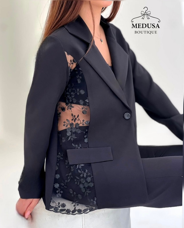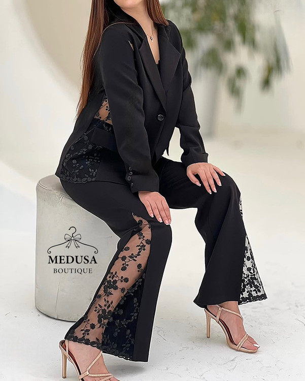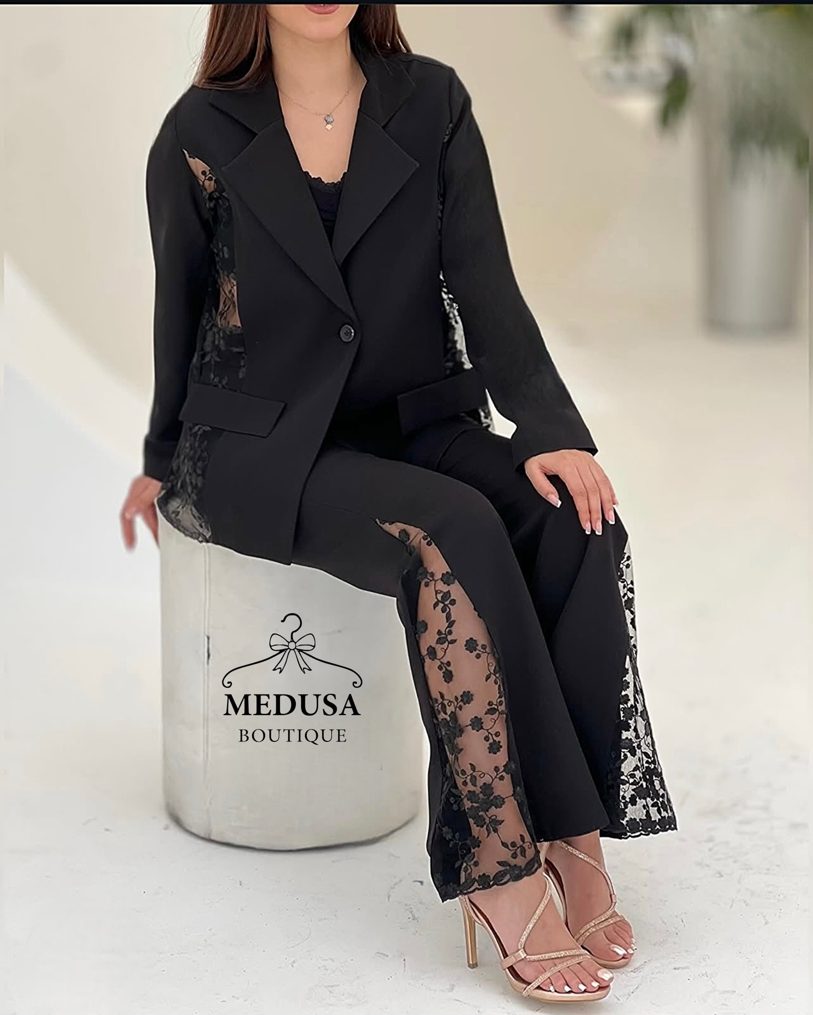ست کت وشلوار مجلسی بهاره کت کنار گیپور با شلوار کنارگیپور مدوسا