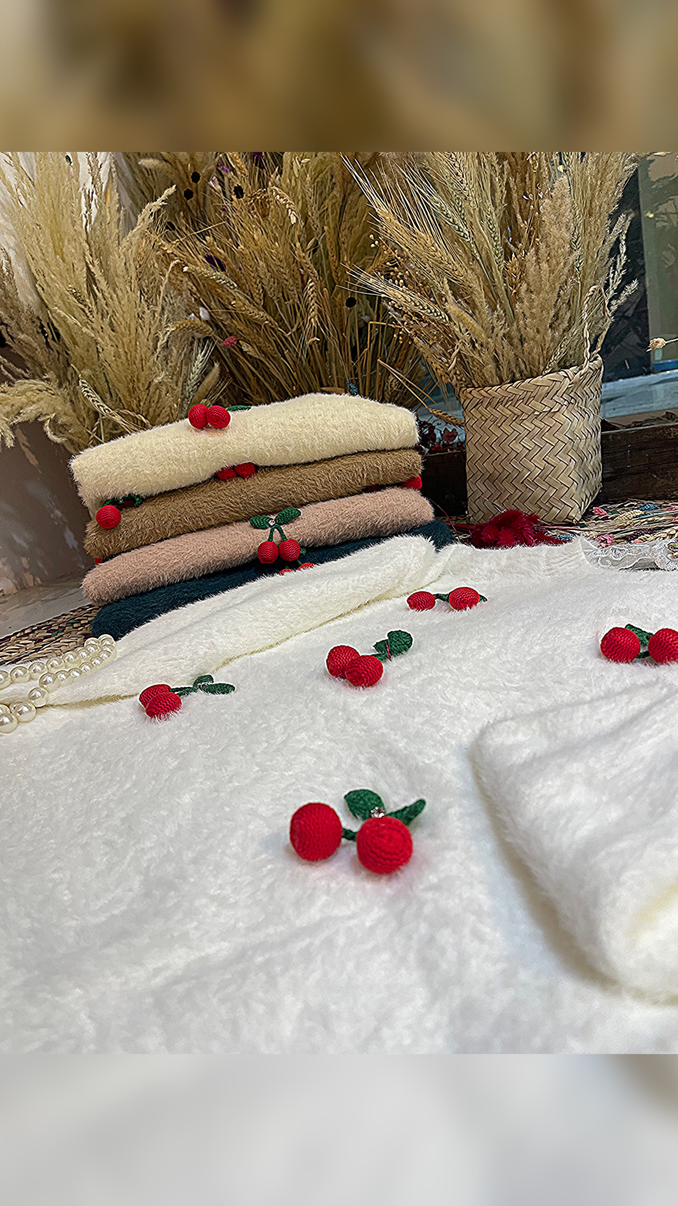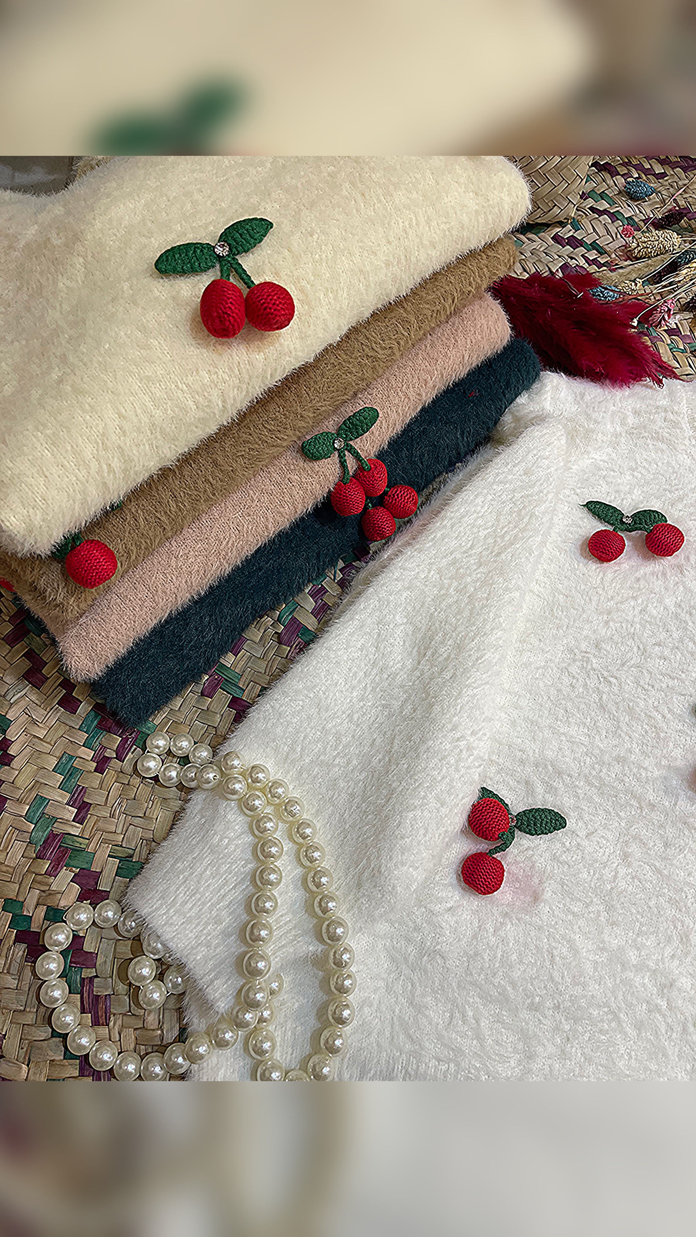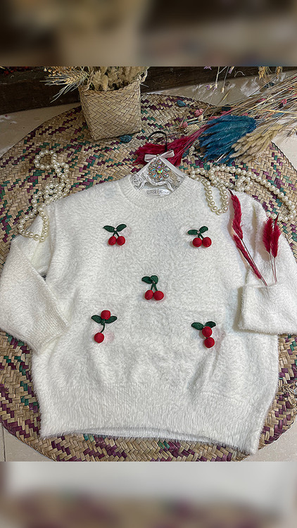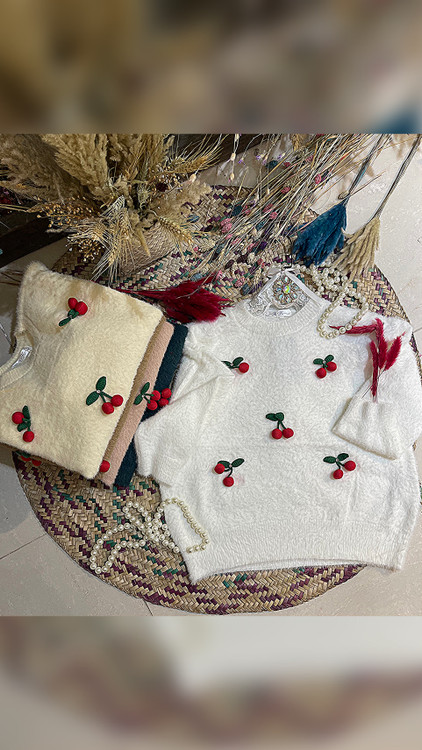 بلوز بافت موهر طرح گیلاسی وارداتی کد 005