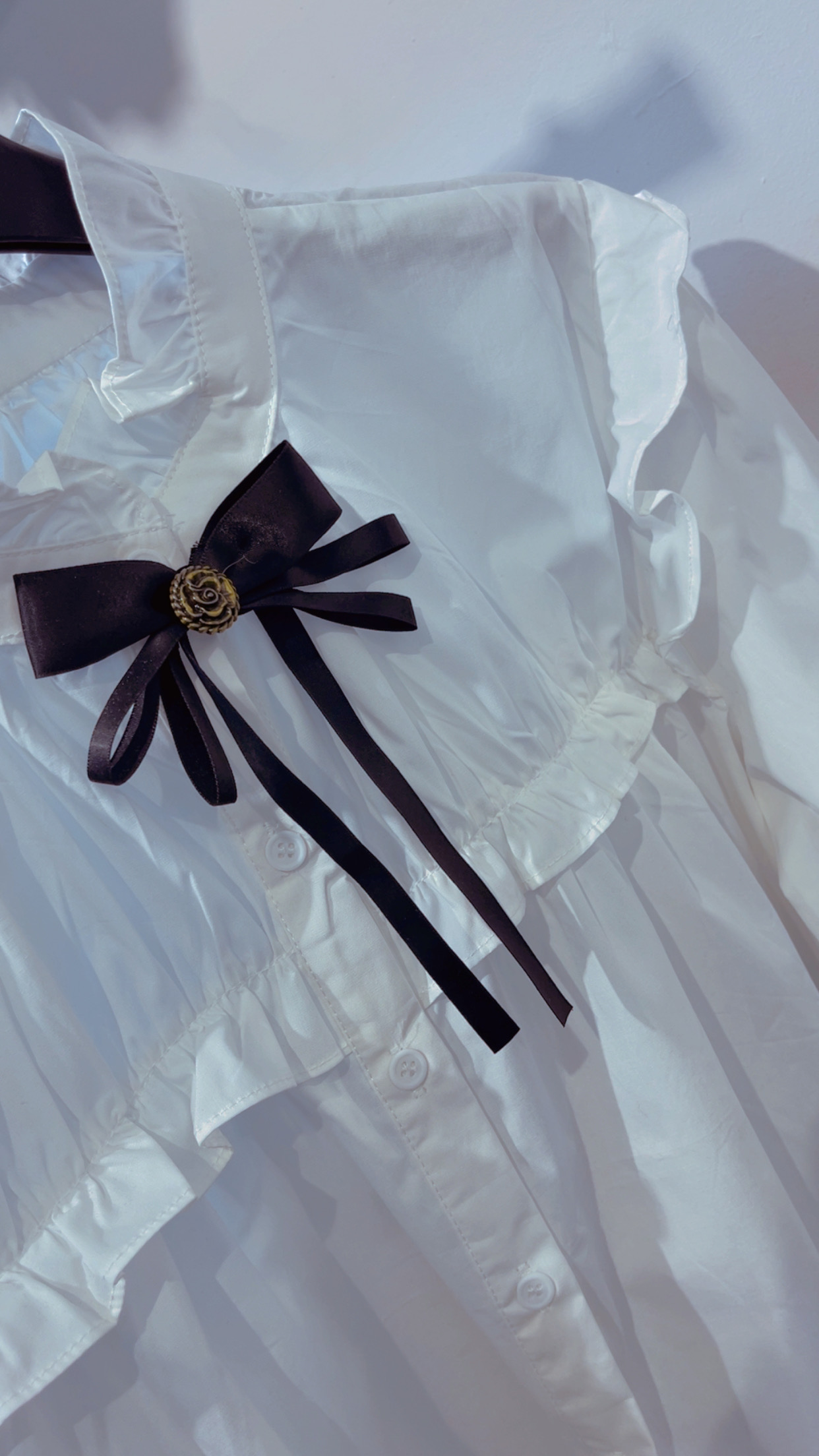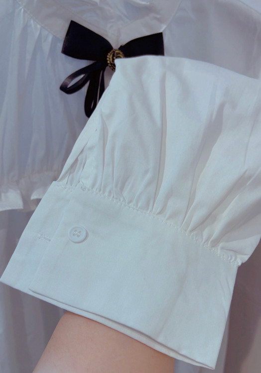 شومیز عروسکی سفید یقه چین دار نخی وارداتی