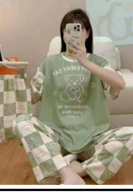 ست سه تکه راحتی جنس نخ پنبه پرمیوم تی شرت +شرتک+شلوار وارداتی