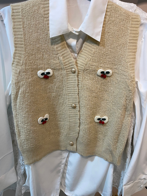 ست وست وشومیز بافت طرح پاپیون گیلاسی وارداتی