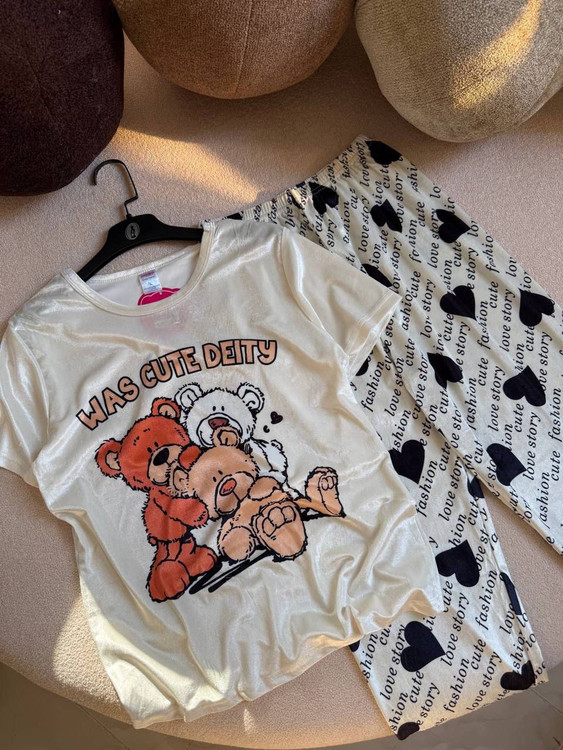 🦋 ست راحتی دوتکه مخمل تی شرت با شلوار طرح تدی 🧸 وارداتی