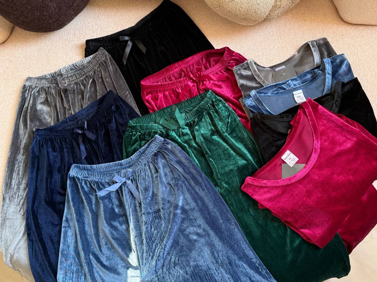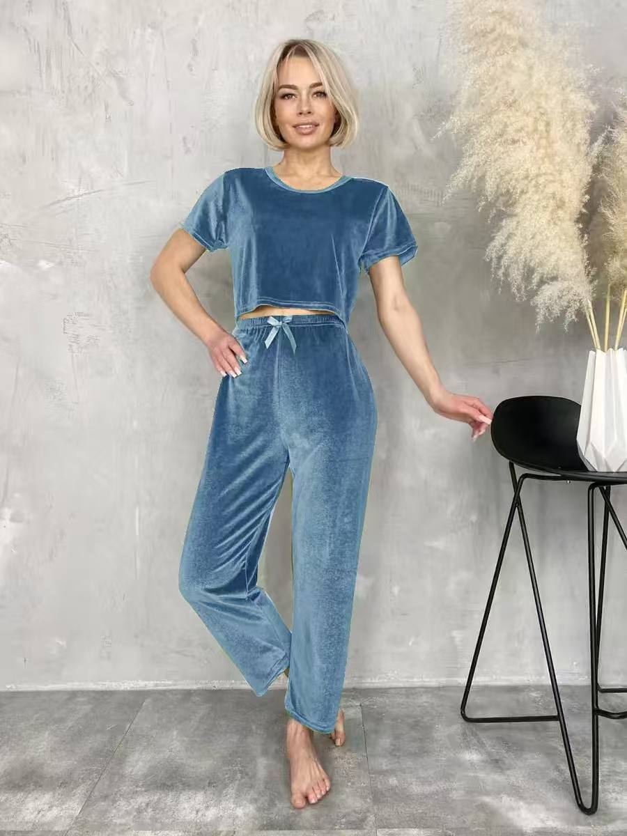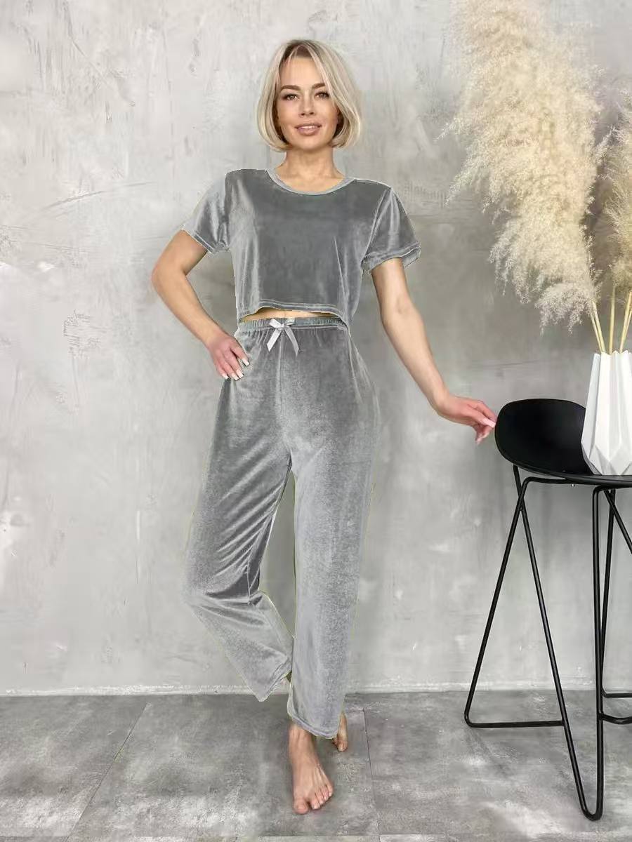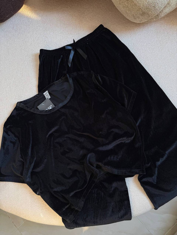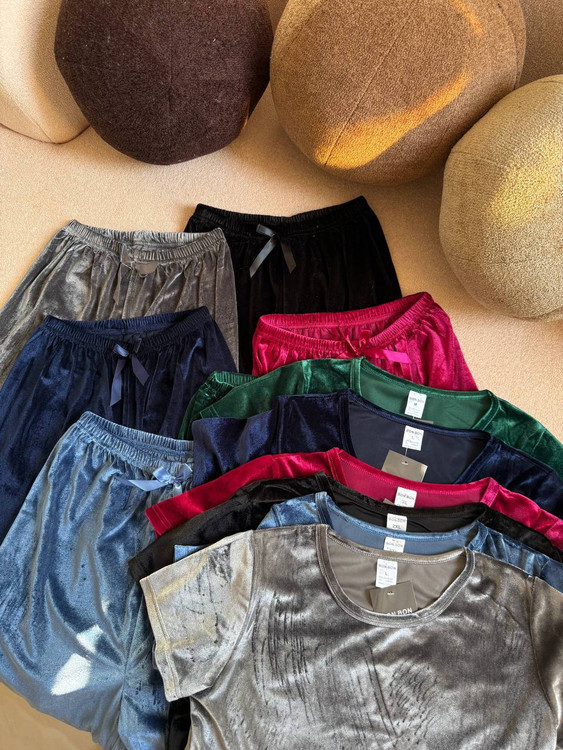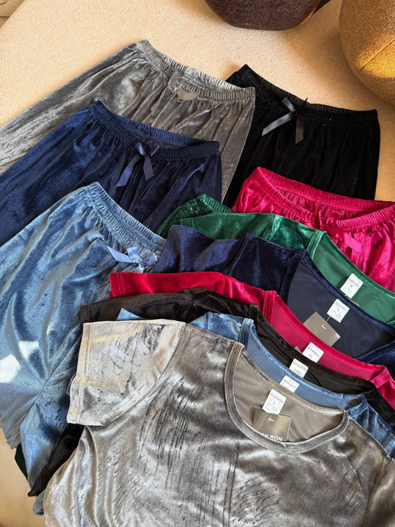 ست راحتی دوتکه مخمل کراپ استین بلند با شلوار وارداتی